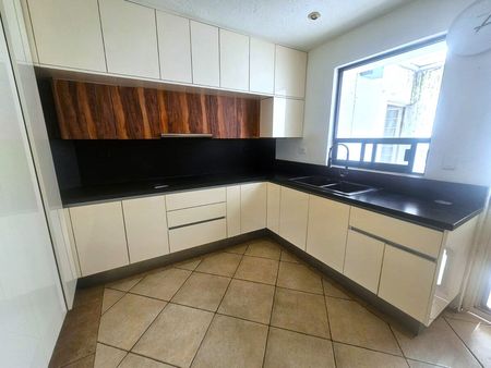 - Moderna cocina integral equipada con hornos empotrados y espacio para refrigerador doble puerta