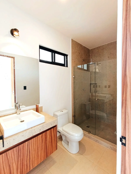 Recámara principal un baño completo, doble lavabo, walking closet , dos recámaras secundarias con closets y baño completo cada una.