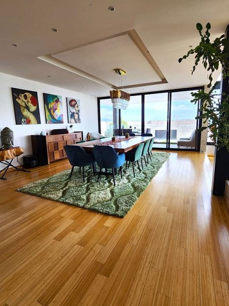 Dentro de esta hermosa residencia encontrarás en la planta baja una preciosa estancia a desnivel con techos a doble altura. La cocina muy amplia en un concepto abierto, comedor y una terraza al aire libre con vista al jardín. También cuenta con un estudio y un medio baño.