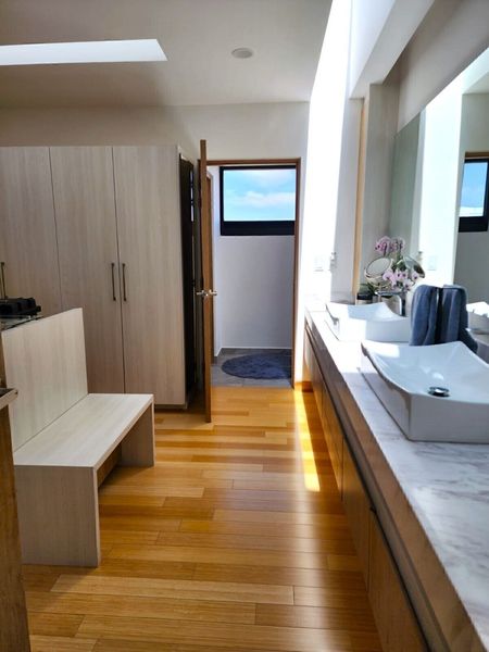 En el primer piso se encuentran la recamara principal con un impresionante walk in closet, baño con doble regadera y tina, las 2 recamaras secundarias con baño y walk in closet cada una.